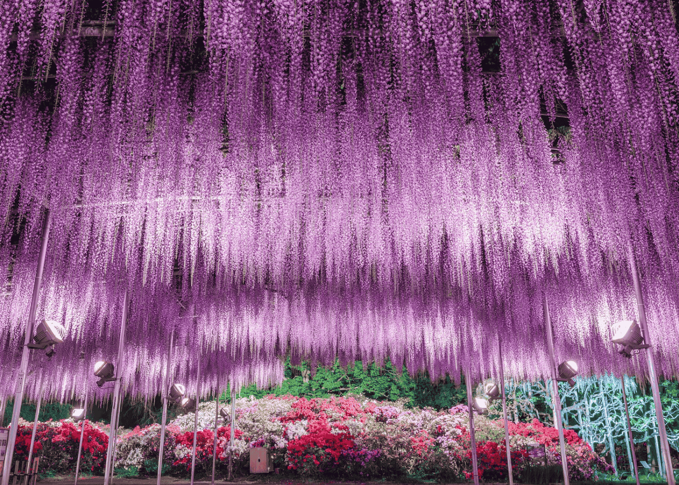 El Ashikaga Flower Park es uno de los jardines florales más famosos de Japón y uno de los mejores lugares para ver glicinas. Alberga más de 350 árboles, incluyendo una glicina gigante de más de 150 años.