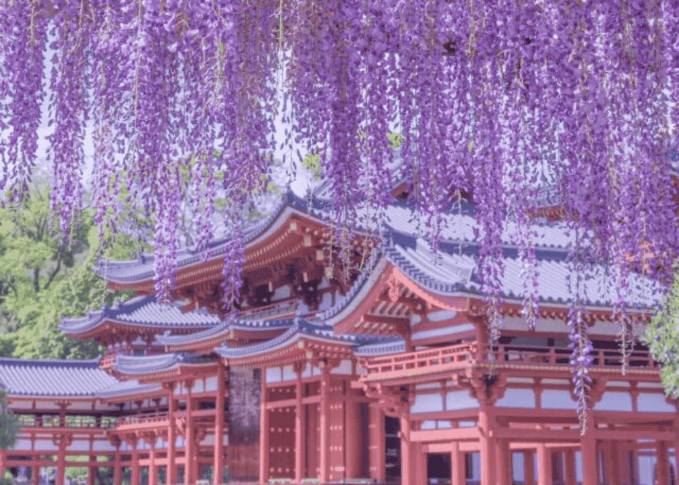 El templo Byodo-in, Patrimonio de la Humanidad, es uno de los lugares más icónicos de Japón. Durante la primavera, las glicinas añaden un toque especial al paisaje, enmarcando el famoso Pabellón del Fénix.